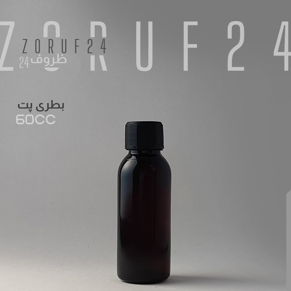 بطری پلاستیکی پت 60 سی سی گرد دهانه 18 - قهوه ای / تک فروشی