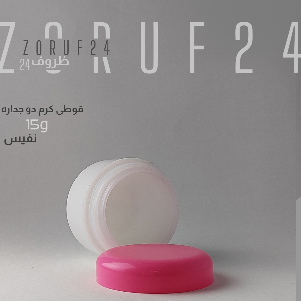 قوطی کرم دو جداره ۱۵ گرمی نفیس | بسته بندی حرفهای برای محصولات مراقبتی در ظروف ۲۴